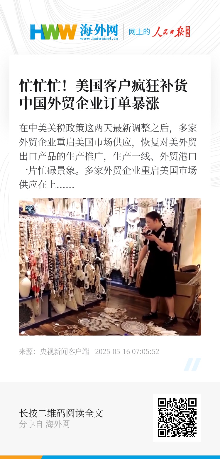 在中美关税政策这两天最新调整之后,多家外贸企业重启美国市场供应,恢复对美外贸出口产品的生产推广,生产一线、外贸港口一片忙碌景象。