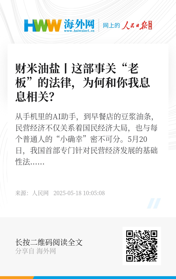 从手机里的AI助手,到早餐店的豆浆油条,民营经济不仅关系着国民经济大局,也与每个普通人的“小确幸”密不可分。