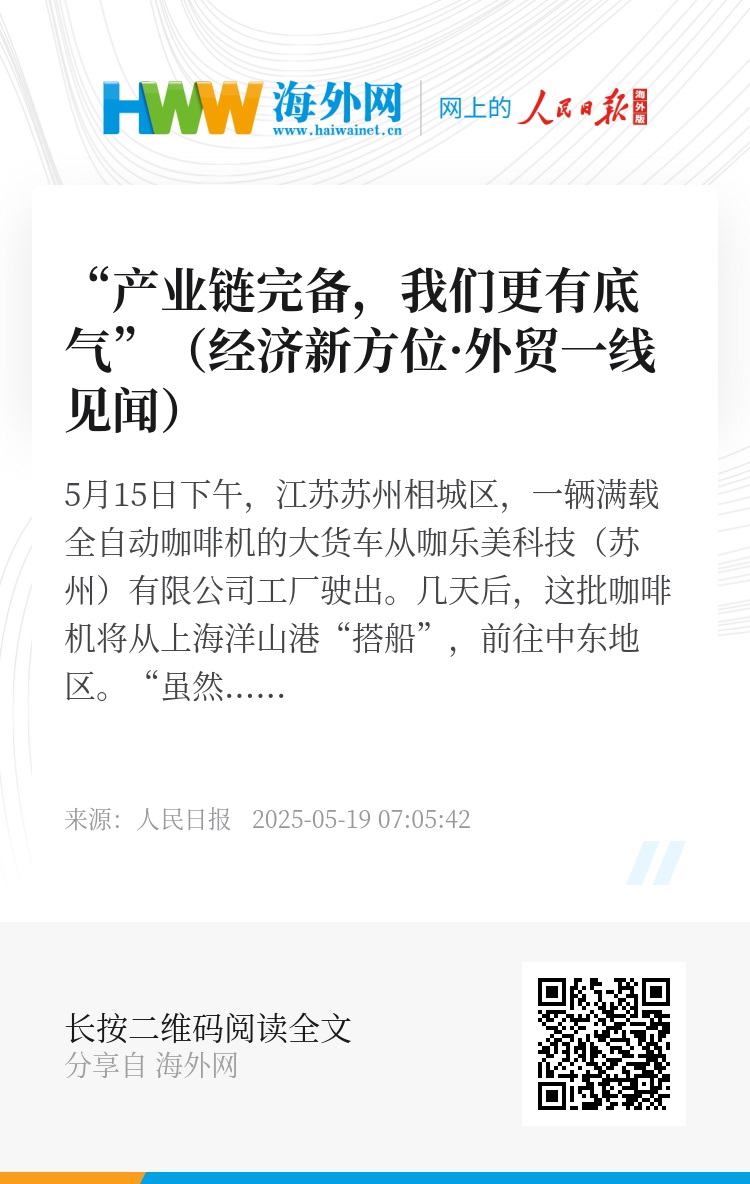 掌握关键技术,背靠国内大市场,哪怕外贸局势有起有伏,中国企业照样稳得住、走得远。(本报记者 王伟健)