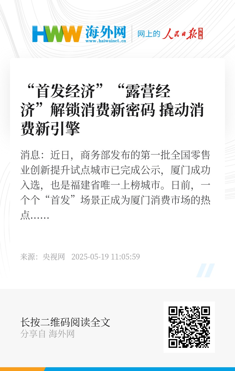 央视网消息:近日,商务部发布的第一批全国零售业创新提升试点城市已完成公示,厦门成功入选,也是福建省唯一上榜城市。日前,一个个“首发”场景正成为厦门消费市场的热点。厦门因地制宜推进首发经济,不断释放消费潜力。