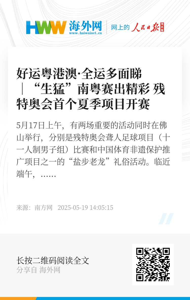 5月17日上午,有两场重要的活动同时在佛山举行,分别是残特奥会聋人足球项目(十一人制男子组)比赛和中国体育非遗保护推广项目之一的“盐步老龙”礼俗活动。临近端午,也是在今年的全国助残日到来之际,这两场活动在时空的交织中产生微妙的化学反应。
