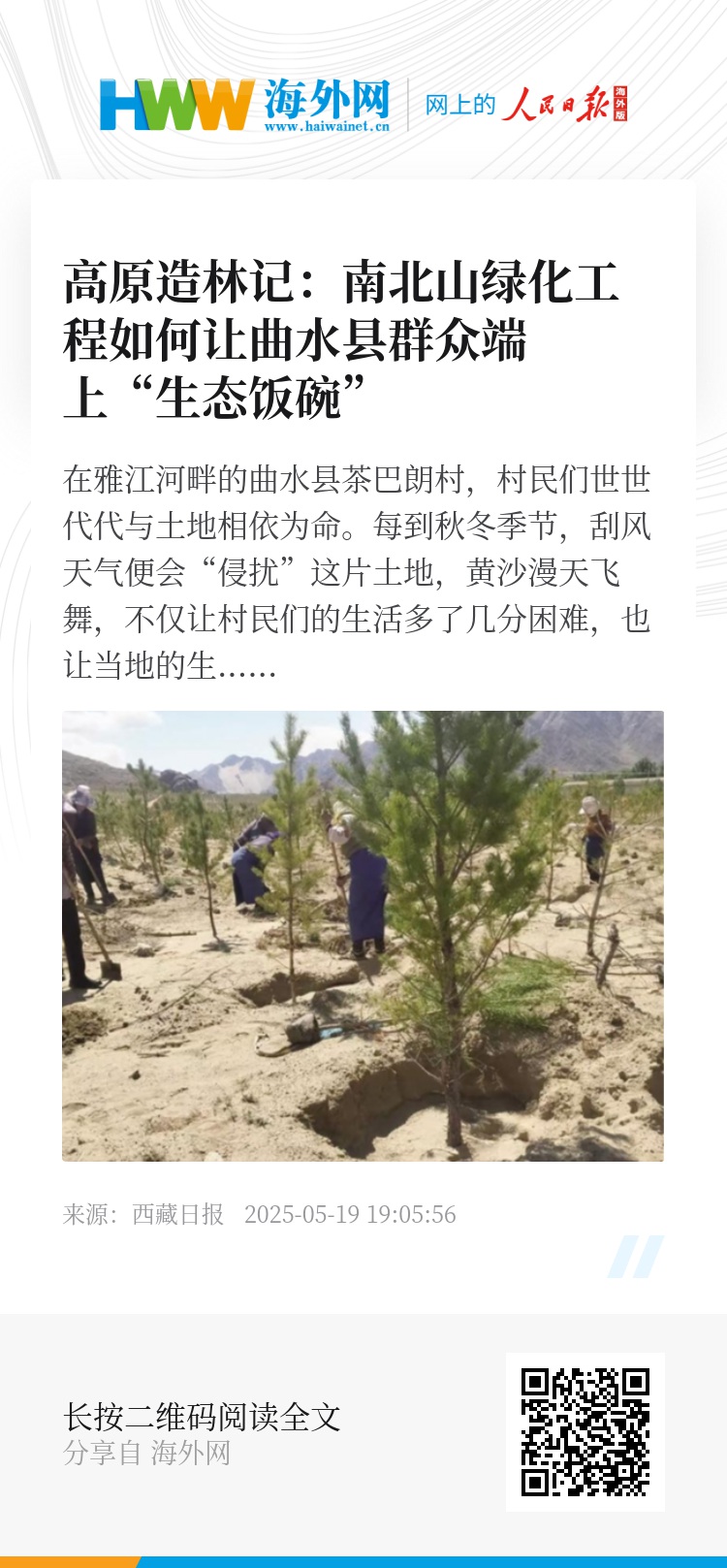 作为西藏首个规模化山体造林的重大生态修复工程,拉萨南北山绿化工程创造了高海拔地区人工造林的生态奇迹。自2022年该工程启动以来,曲水县作为其中重要部分,全县上下万众一心,众志成城,在这片土地上,播撒绿色希望,重塑生命图谱,实现了令人惊叹的生态逆袭。