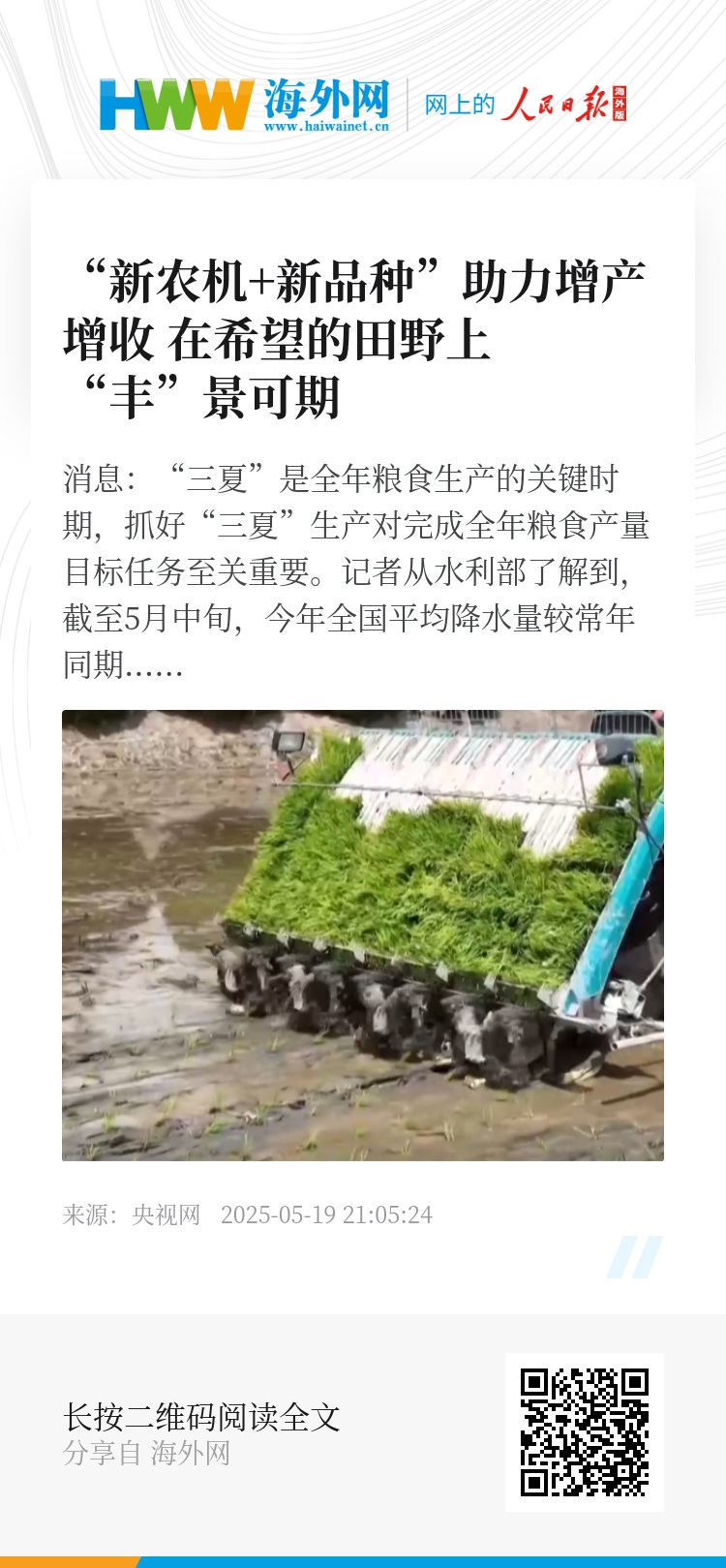 初夏时节,在黑龙江鸡西的广袤农田里,电动轨道运苗车、无人驾驶插秧机、辅助直行导航系统等先进农机装备的运用,让插秧作业变得省时省力,更加精准高效的农业生产方式为粮食丰收打下坚实基础。