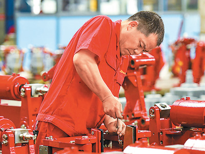 近年来,江西省丰城市大力发展民营经济,壮大县域经济。截至目前,该市民营经济主体达2万余户,已形成鞋服箱包、电子装备制造、现代家居等产业集群,解决了一大批农民工就业问题。图为5月14日,在丰城市一家制动器产品公司,工人赶制订单产品。