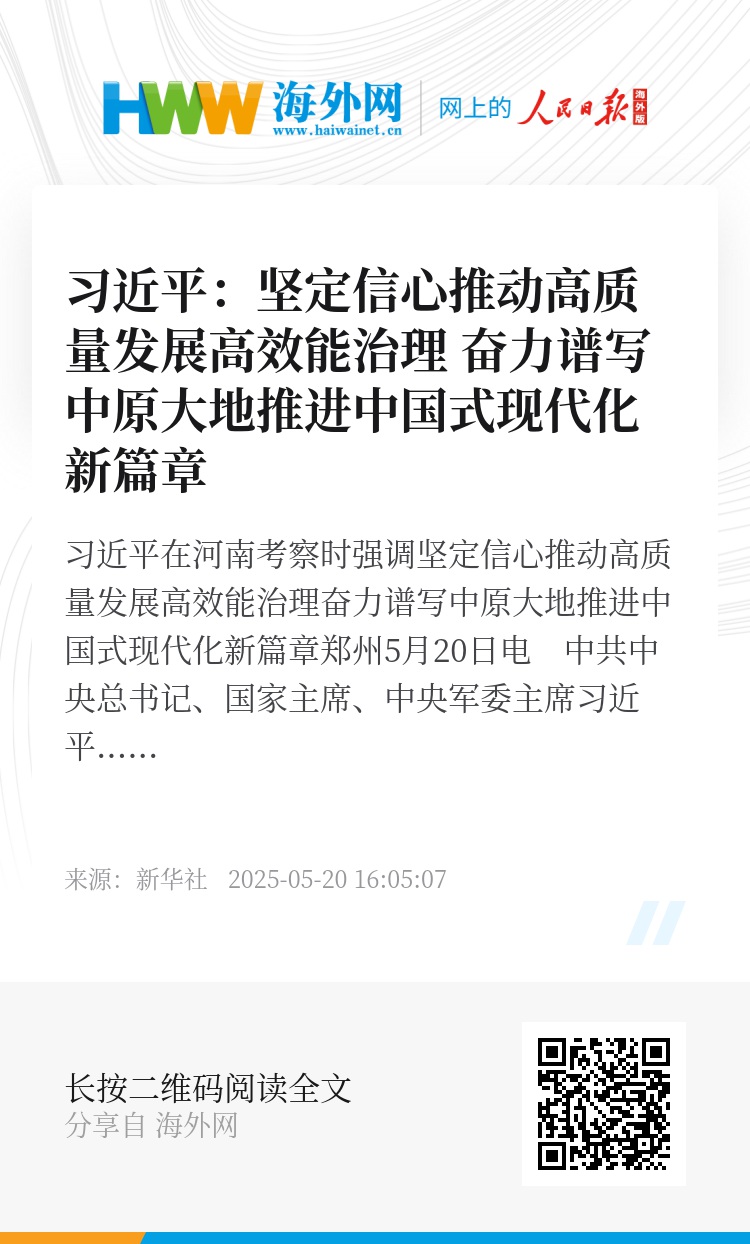 5月19日至20日,习近平在河南省委书记刘宁和省长王凯陪同下,先后到洛阳、郑州考察调研。