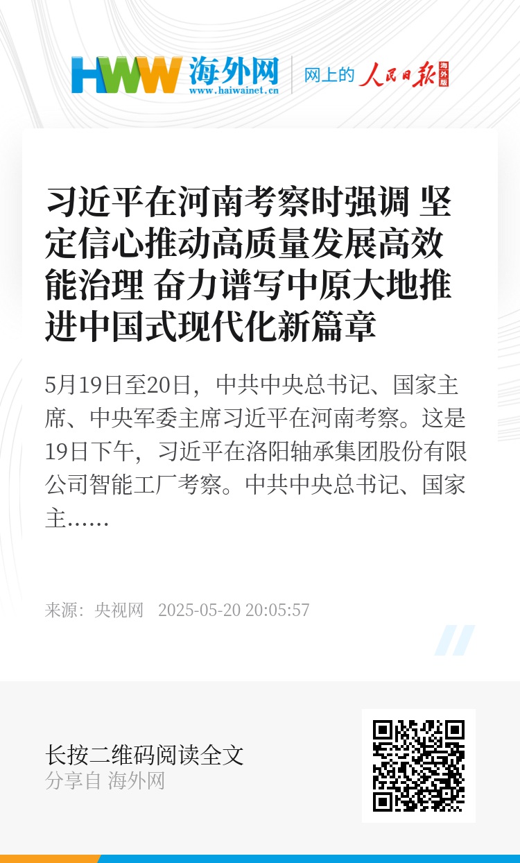 5月19日至20日,习近平在河南省委书记刘宁和省长王凯陪同下,先后到洛阳、郑州考察调研。
