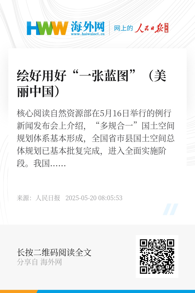自然资源部在5月16日举行的例行新闻发布会上介绍,“多规合一”国土空间规划体系基本形成,全国省市县国土空间总体规划已基本批复完成,进入全面实施阶段。我国国土空间开发保护格局持续优化,为促进城乡融合发展发挥重要作用。