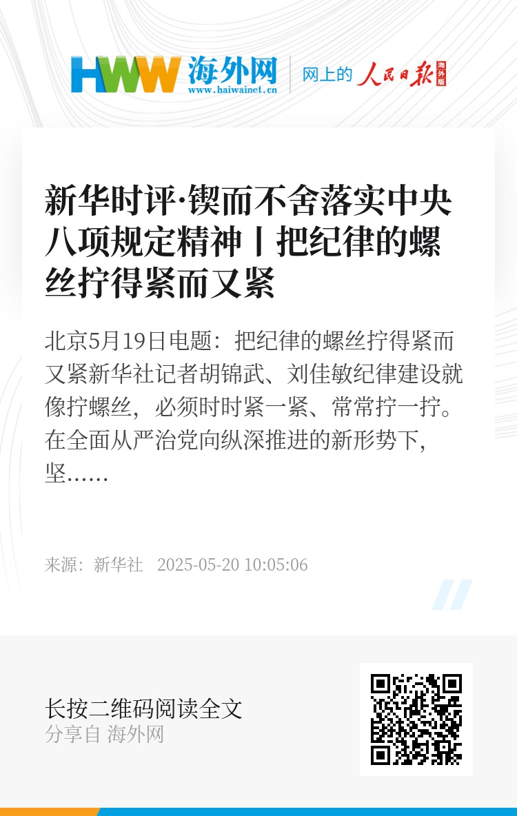 新华社北京5月19日电题:把纪律的螺丝拧得紧而又紧