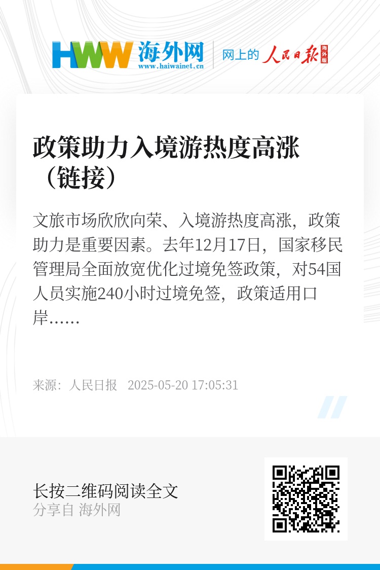 文旅市场欣欣向荣、入境游热度高涨,政策助力是重要因素。去年12月17日,国家移民管理局全面放宽优化过境免签政策,对54国人员实施240小时过境免签,政策适用口岸总数进一步增加,外国游客可以在允许停留活动区域内跨省域旅行。一系列免签政策的推出,让外国游客来到中国不仅停留时间更长,活动区域也大幅拓展。