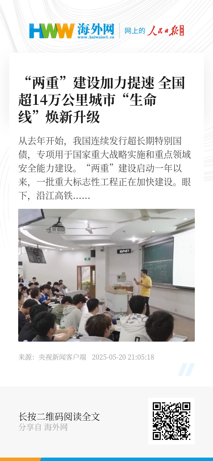 从去年开始,我国连续发行超长期特别国债,专项用于国家重大战略实施和重点领域安全能力建设。“两重”建设启动一年以来,一批重大标志性工程正在加快建设。