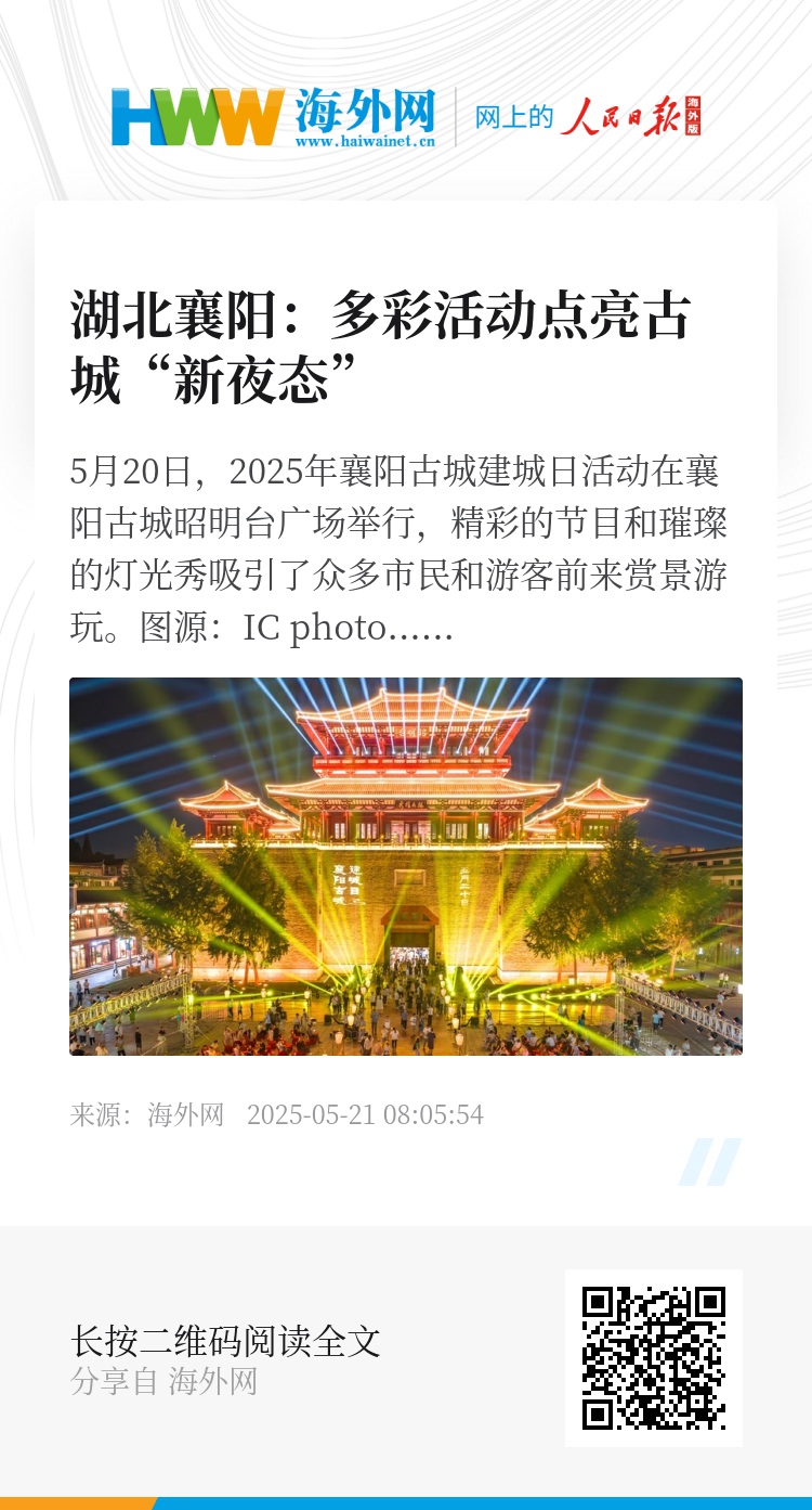 32864170,.湖北襄阳:多彩活动点亮古城“新夜态”,.2025-05-21 08:51:54,.204428,.张青津、卢思宇