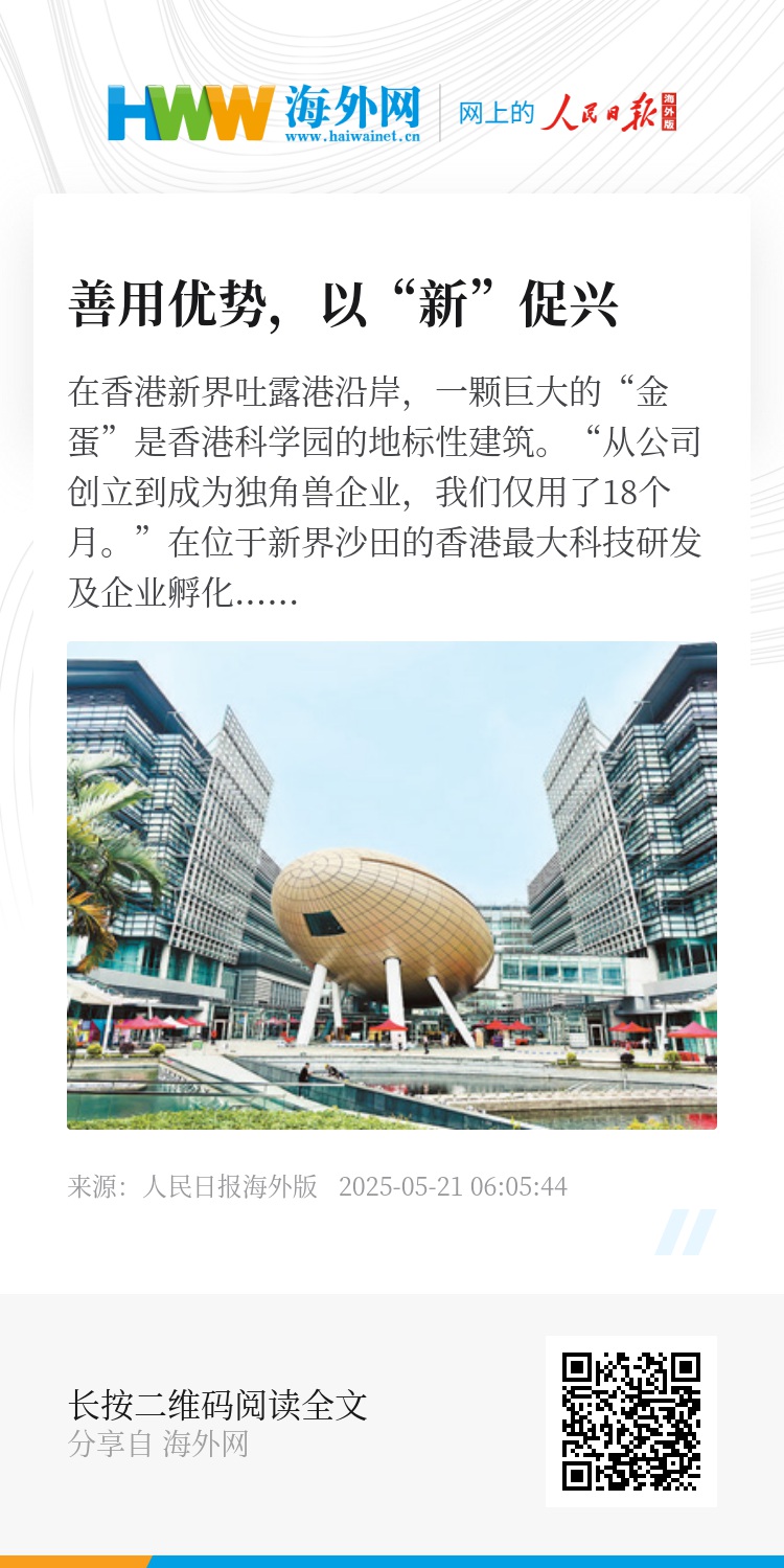 在香港新界吐露港沿岸,一颗巨大的“金蛋”是香港科学园的地标性建筑。目前,包括思谋科技在内的约2200家科技企业在香港科学园从事研发,入驻科研人员约1.5万人。记者在园区内看到,创新创业氛围浓厚,初创企业和人才集聚,各界支持力度不断加大,科创生态圈蓬勃发展。