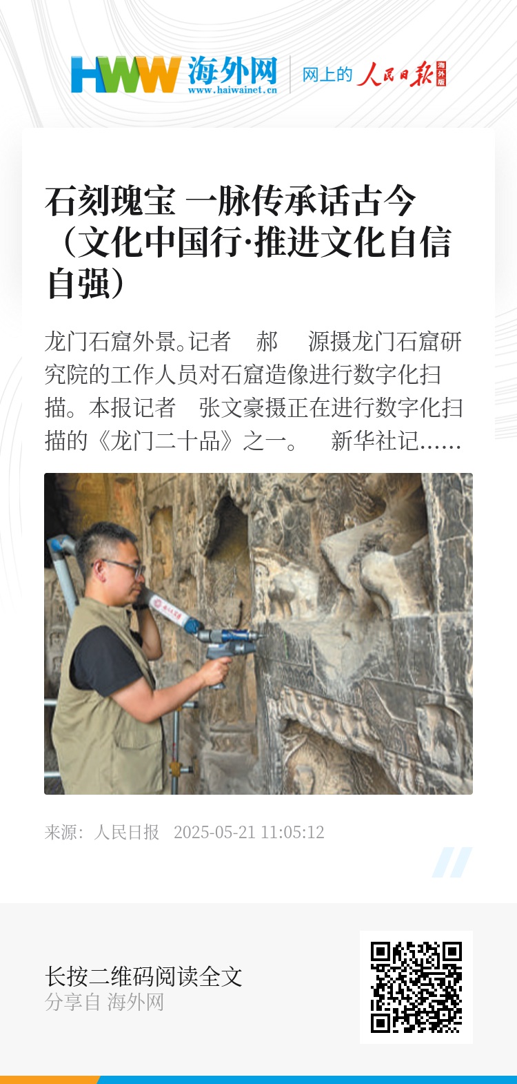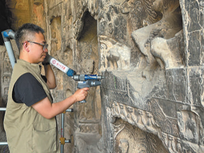 “为了保护文物本体,我们悬挑架杆,脚手架与壁面保持间隔,并尽量让游客看到卢舍那的微笑。”马朝龙说,这次大修,龙门石窟研究院联合高校对洞窟含水率、风化程度全面“体检”,建立数字化档案,为石刻定制“健康手册”。