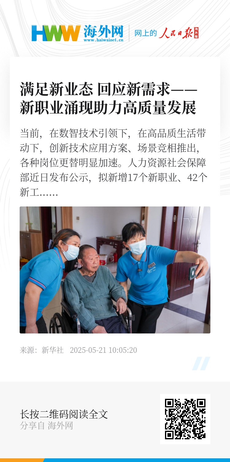 当前,在数智技术引领下,在高品质生活带动下,创新技术应用方案、场景竞相推出,各种岗位更替明显加速。人力资源社会保障部近日发布公示,拟新增17个新职业、42个新工种。这些新职业、新工种,如同一面镜子,清晰映射产业变革的新趋势、社会发展的新需要,同时也为劳动者就业开辟新赛道。