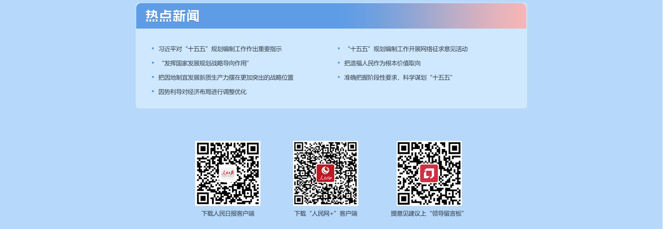 “十五五”规划编制工作网络征求意见活动自5月20日起开展,特开设“我为‘十五五’规划献一策”专栏,通过网络公开征求意见建议。热忱欢迎广大人民群众和社会各界通过人民日报客户端、人民网网页端、“人民网+”客户端等积极参与,在专栏页面上选择建言分类,提交您的建言内容。衷心感谢您的宝贵意见建议。
