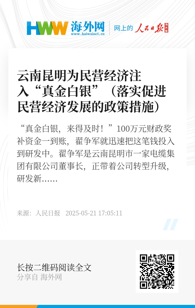 今年,昆明市将持续聚焦产业发展重点领域,加强各类财政资金统筹,落实各项政策措施,促进民营经济和中小企业高质量发展。(记者 叶传增)