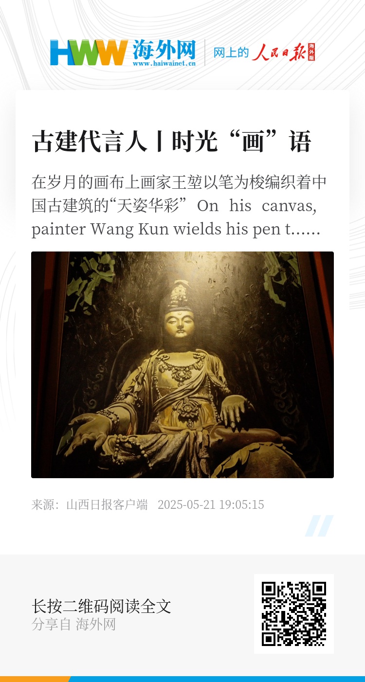 On his canvas, painter Wang Kun wields his pen to weavingthe elegance of Chinese ancient architectures.