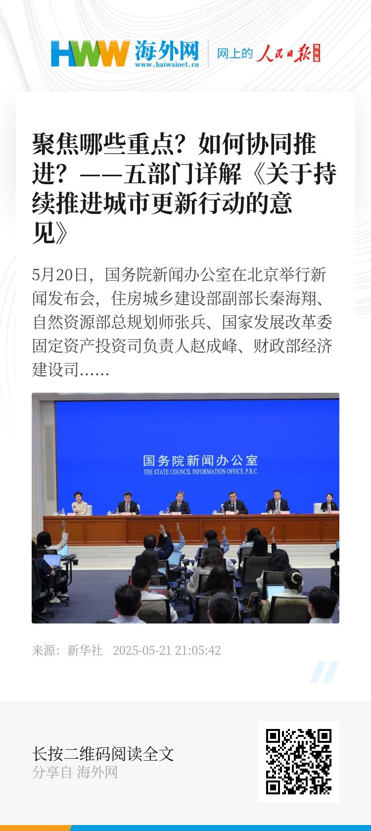 城市更新将聚焦哪些重点任务?下一步将如何协同推进、加强落实?20日,在国新办新闻发布会上,有关部门负责人详细解答了意见相关问题。