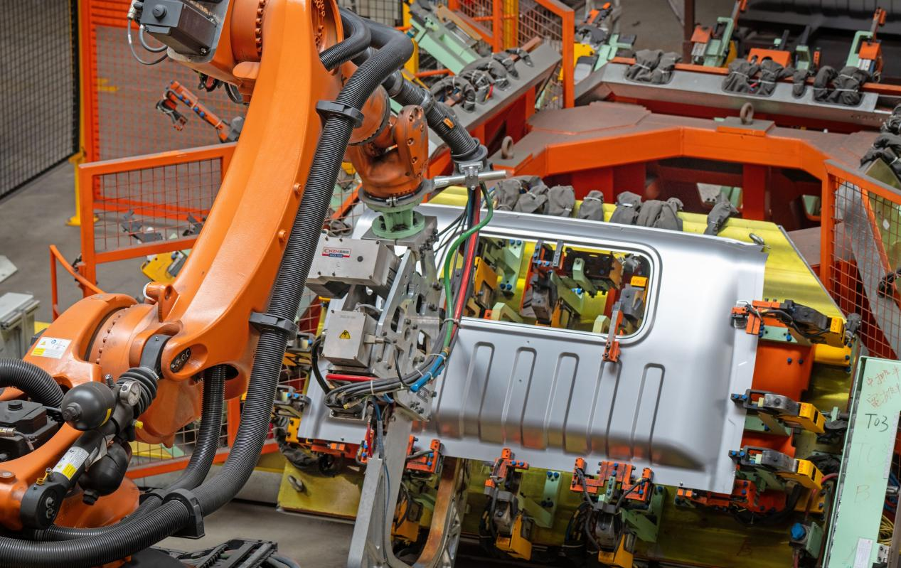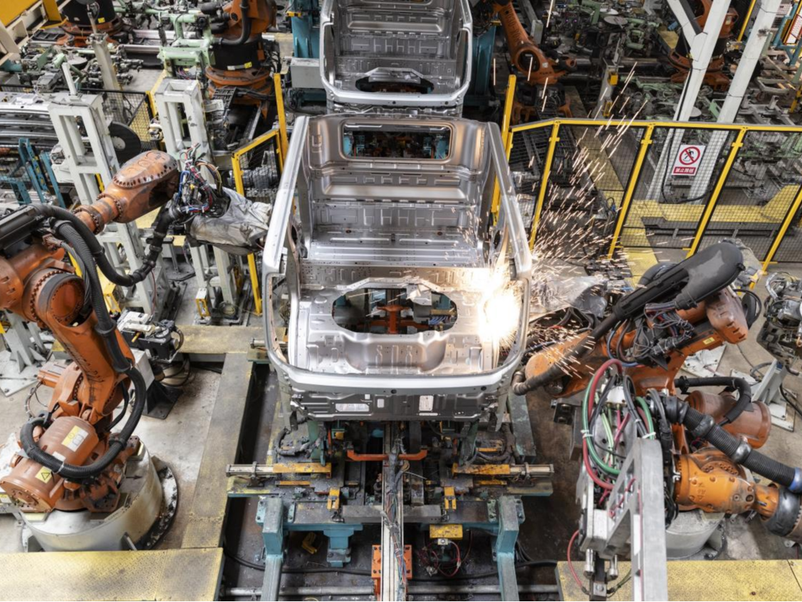 江铃汽车股份有限公司富山工厂里,工业机器人在进行焊接作业。王剑 摄
