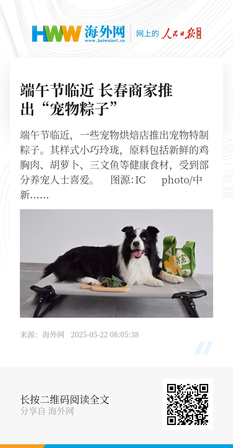 端午节临近,一些宠物烘焙店推出宠物特制粽子。其样式小巧玲珑,原料包括新鲜的鸡胸肉、胡萝卜、三文鱼等健康食材,受到部分养宠人士喜爱。 图源:IC photo/中新社记者 张瑶 摄