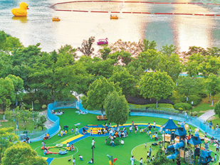 江西省赣州市章贡区有效利用城市生态空间,持续推进“口袋公园”、适老化公园建设。图为章贡区一处经过适老化、适幼化改造后的公园。