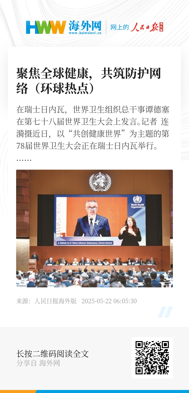 近日,以“共创健康世界”为主题的第78届世界卫生大会正在瑞士日内瓦举行。大会审议通过了被视为具有“里程碑意义”的《世界卫生组织大流行协定》,并将审议约75项议程及子议程,预计通过40多项决议及决定,涵盖卫生和护理人员队伍、抗生素耐药性、突发卫生事件、脊髓灰质炎、气候变化等议题。全球多国聚焦公共卫生议题,为全球健康搭建更加强力的防护网络。