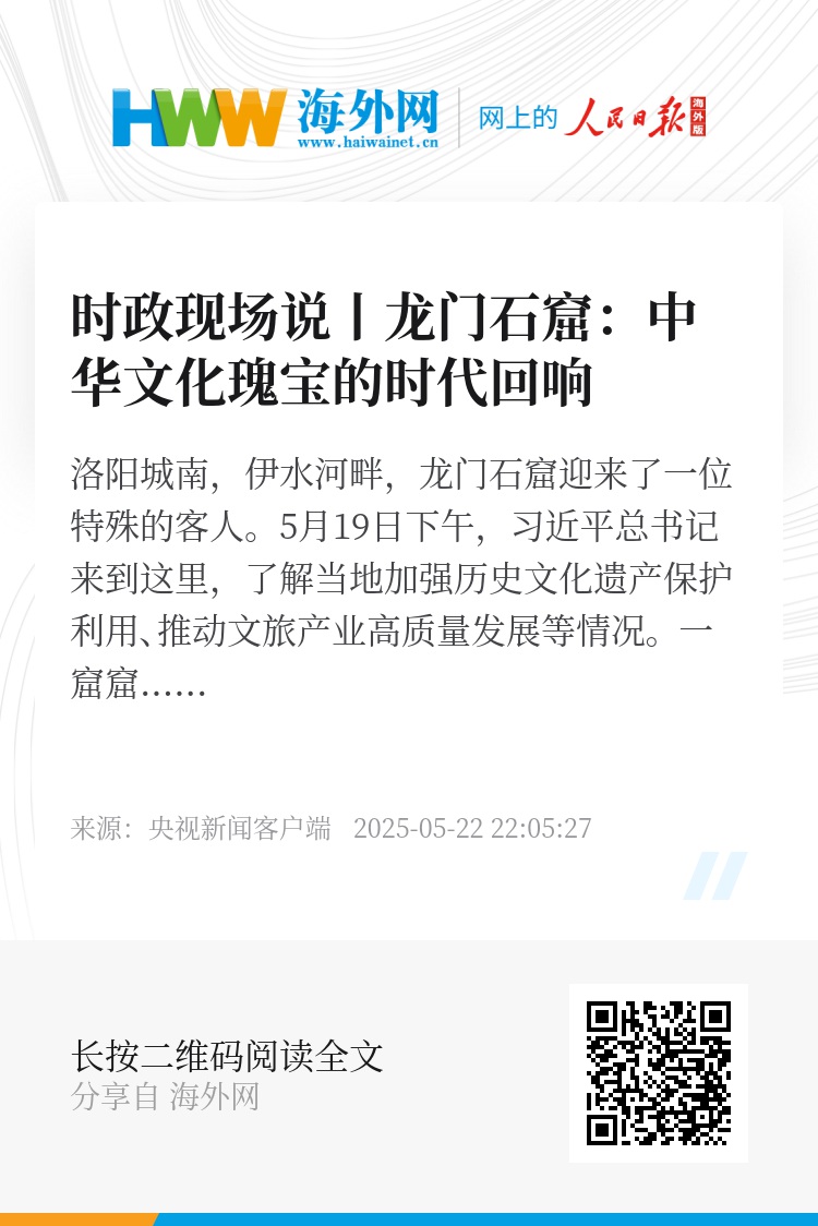 洛阳城南,伊水河畔,龙门石窟迎来了一位特殊的客人。5月19日下午,习近平总书记来到这里,了解当地加强历史文化遗产保护利用、推动文旅产业高质量发展等情况。