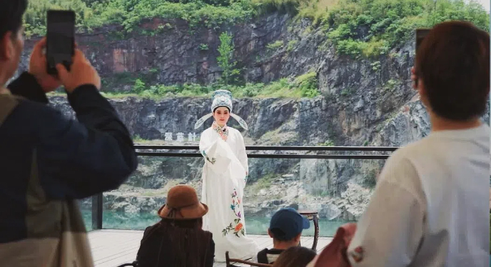 胡颖廉:现在废弃矿坑改造成了“深蓝计划”咖啡馆。我看你们的营销模式是卖门票,门票可以兑换咖啡。游客拿着这杯咖啡,可以坐在一个地方,拍照或者欣赏风景。这个咖啡融入到大自然之后,就可能更有韵味。