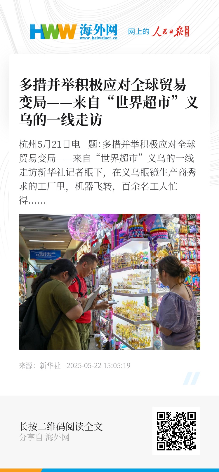 新华社杭州5月21日电 题:多措并举积极应对全球贸易变局——来自“世界超市”义乌的一线走访