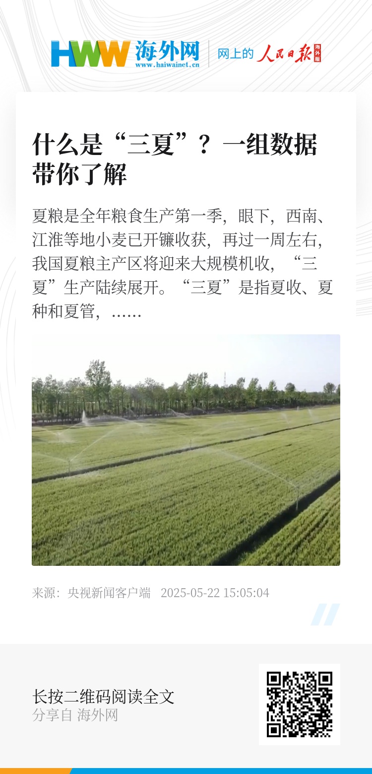 夏粮是全年粮食生产第一季,眼下,西南、江淮等地小麦已开镰收获,再过一周左右,我国夏粮主产区将迎来大规模机收,“三夏”生产陆续展开。