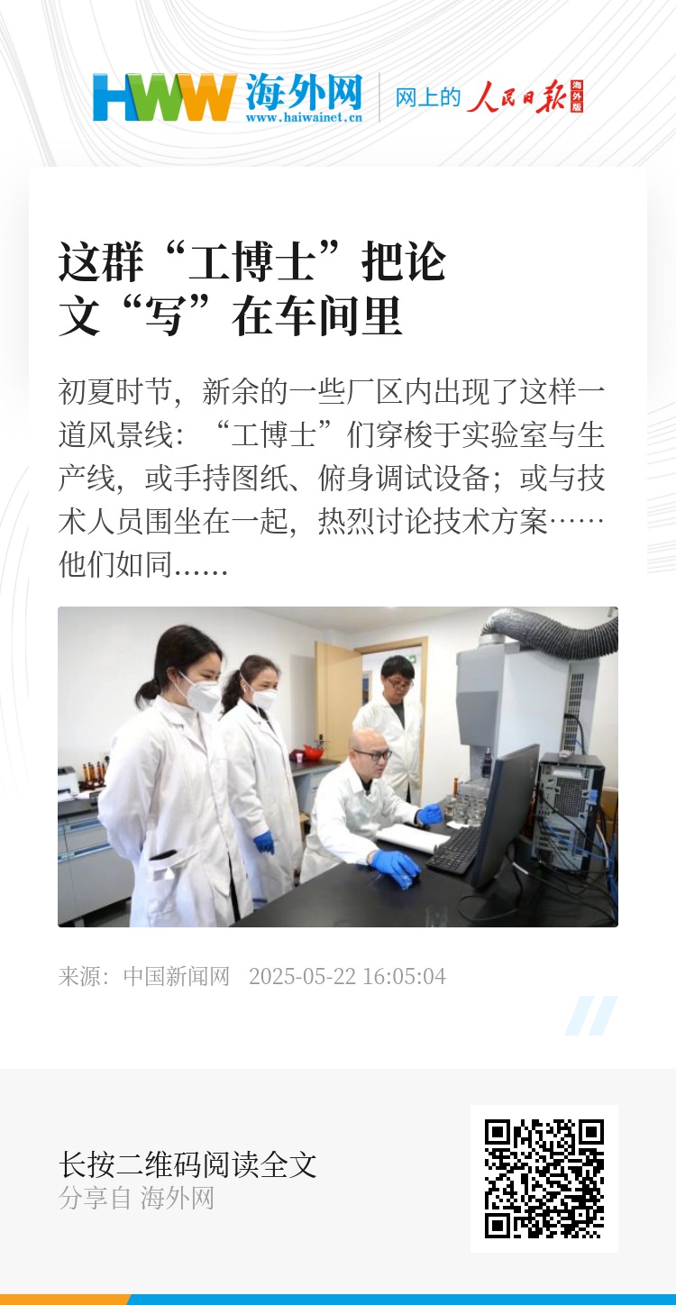 初夏时节,新余的一些厂区内出现了这样一道风景线:“工博士”们穿梭于实验室与生产线,或手持图纸、俯身调试设备;或与技术人员围坐在一起,热烈讨论技术方案……他们如同“技术候鸟”,将高校的创新之泉引入企业土壤,把论文“写”在车间里。