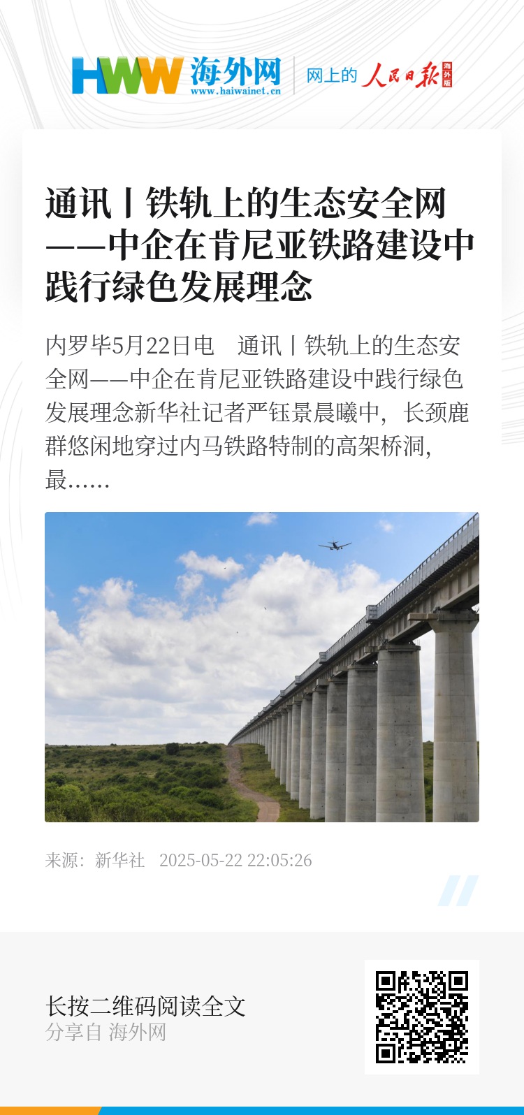 新华社内罗毕5月22日电 通讯丨铁轨上的生态安全网——中企在肯尼亚铁路建设中践行绿色发展理念