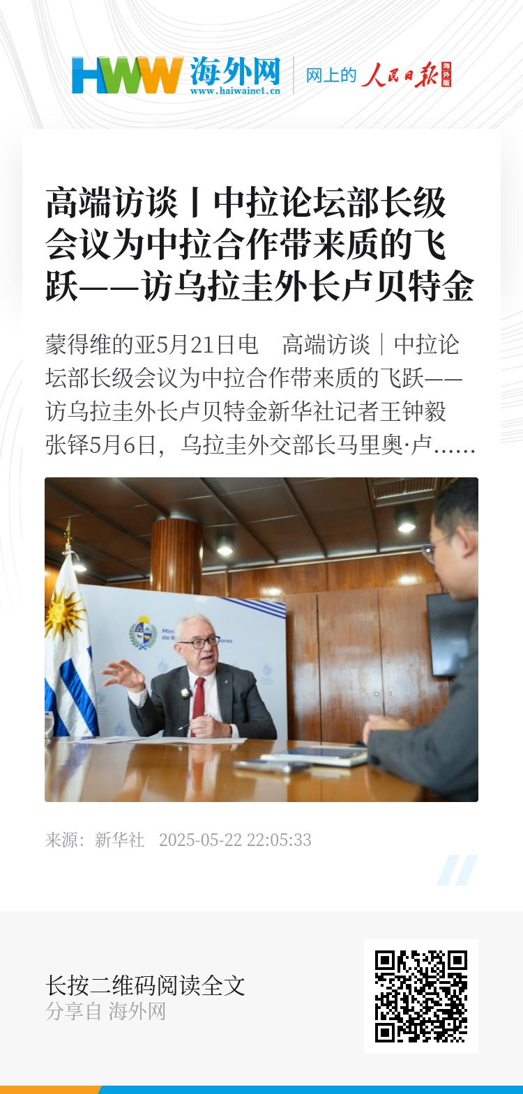 新华社蒙得维的亚5月21日电 高端访谈|中拉论坛部长级会议为中拉合作带来质的飞跃——访乌拉圭外长卢贝特金