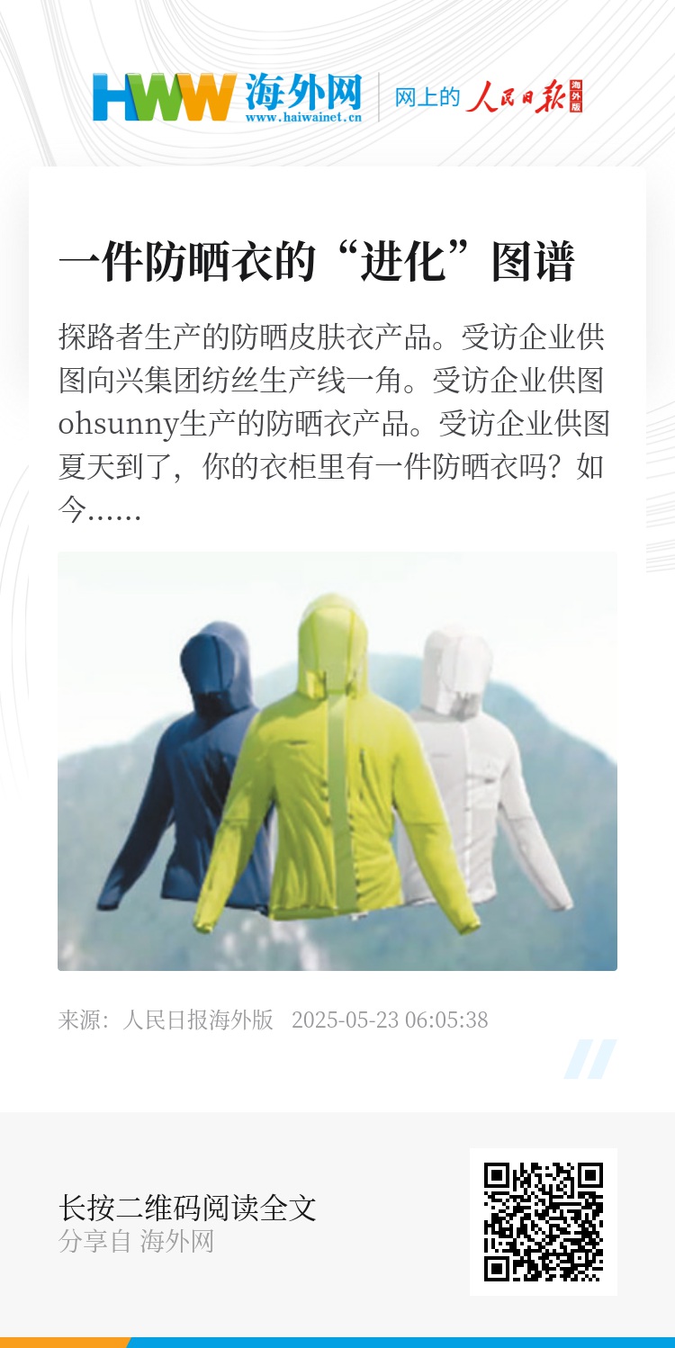 这是如何实现的?带着疑问,记者探访了多家材料企业、面料供应商和成衣品牌。随着采访的深入,记者越来越感到惊喜:一件貌似平平无奇的防晒衣,放大看,竟是藏在每一根纤维里的科技与匠心;拉长看,更是从上游到下游全产业链的蝶变之旅。