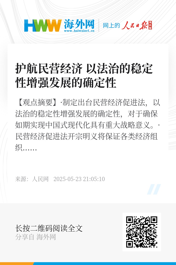 ·民营经济促进法围绕投资融资促进、科技创新、服务保障、权益保护等方面建立完善相关制度机制,直接回应企业诉求,大大提振发展信心。