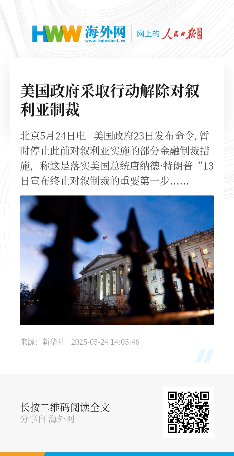 去年12月8日,“叙利亚沙姆解放武装”宣布“解放大马士革并推翻阿萨德政权”。当月10日,叙利亚新政权正式接管权力。今年4月,美国国会两名众议员对叙利亚进行“非正式”访问,会见叙政权领导人艾哈迈德·沙拉,商讨美国取消对叙制裁事宜。特朗普上周访问中东地区期间,于13日在沙特阿拉伯首都利雅得宣布,将下令解除美国对叙利亚的制裁。路透社和法新社分析,特朗普此举“出人意料”,是对土耳其和沙特方面要求的回应,标志着美国政策出现重大转向。