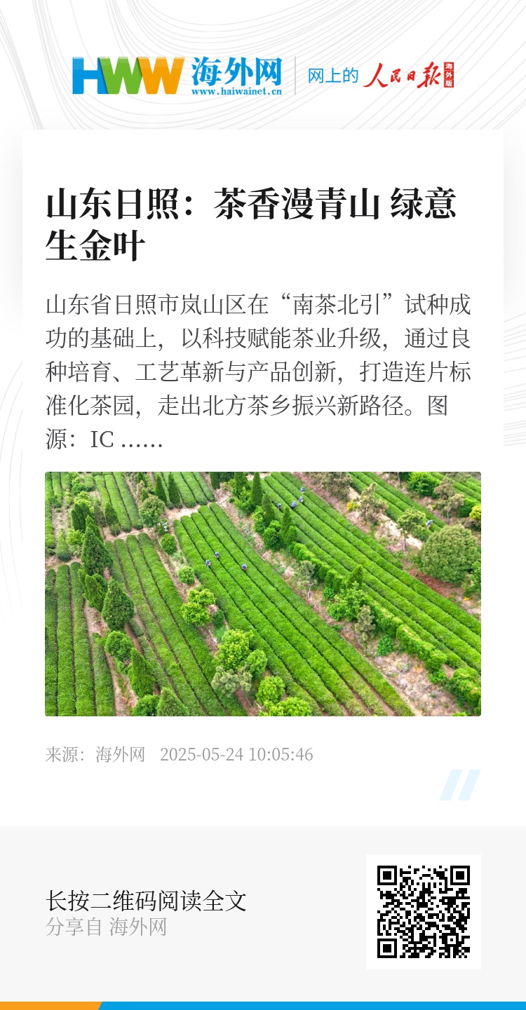 32864993,.山东日照:茶香漫青山 绿意生金叶,.2025-05-24 10:14:46,.204428,.张青津、刘强