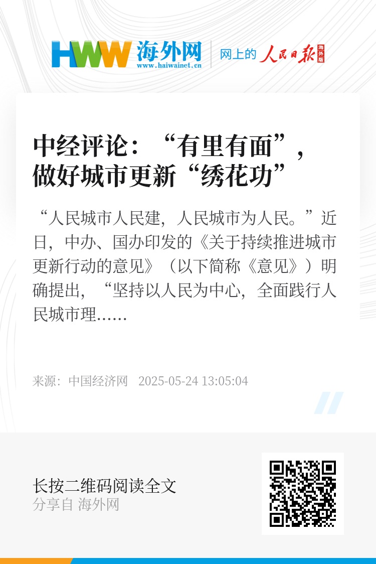在城市更新行动中,只有坚持以人民为中心,强化精准思维,力戒形式主义,一件事情接着一件事情办,办一件成一件,才能使城市既有“面子”更有“里子”,让人民生活更加美好。(中国经济网评论员 邓浩)