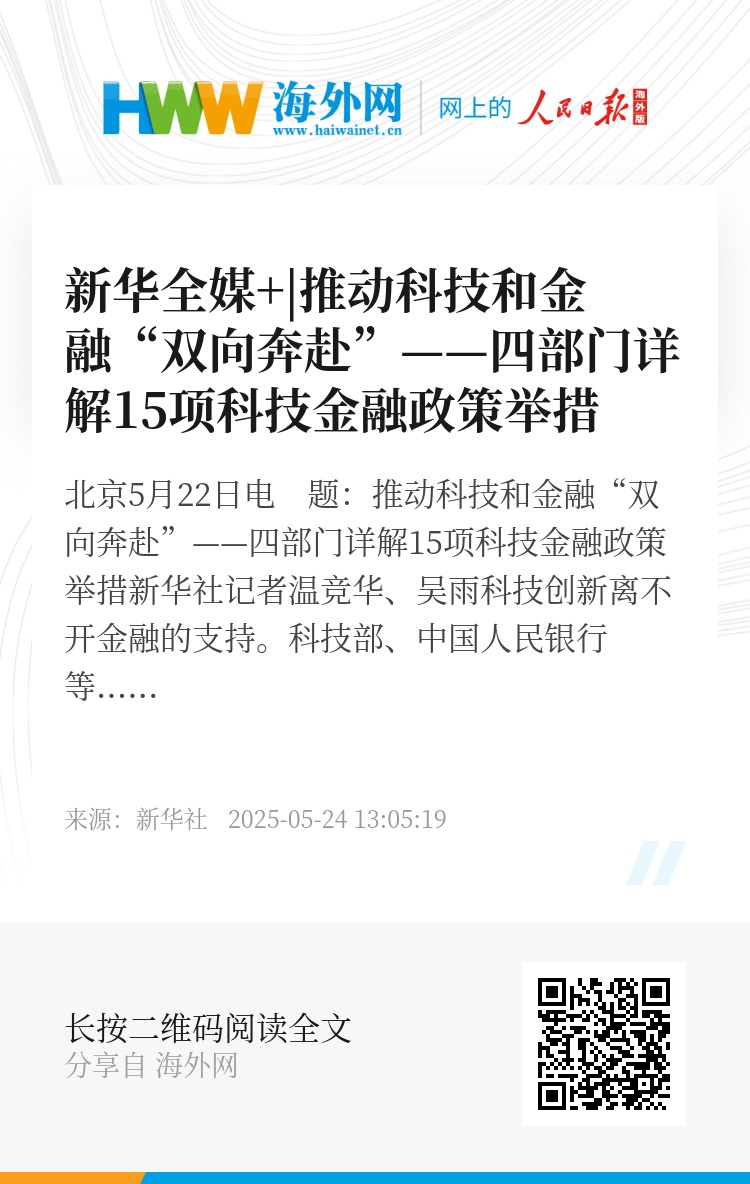 新华社北京5月22日电 题:推动科技和金融“双向奔赴”——四部门详解15项科技金融政策举措