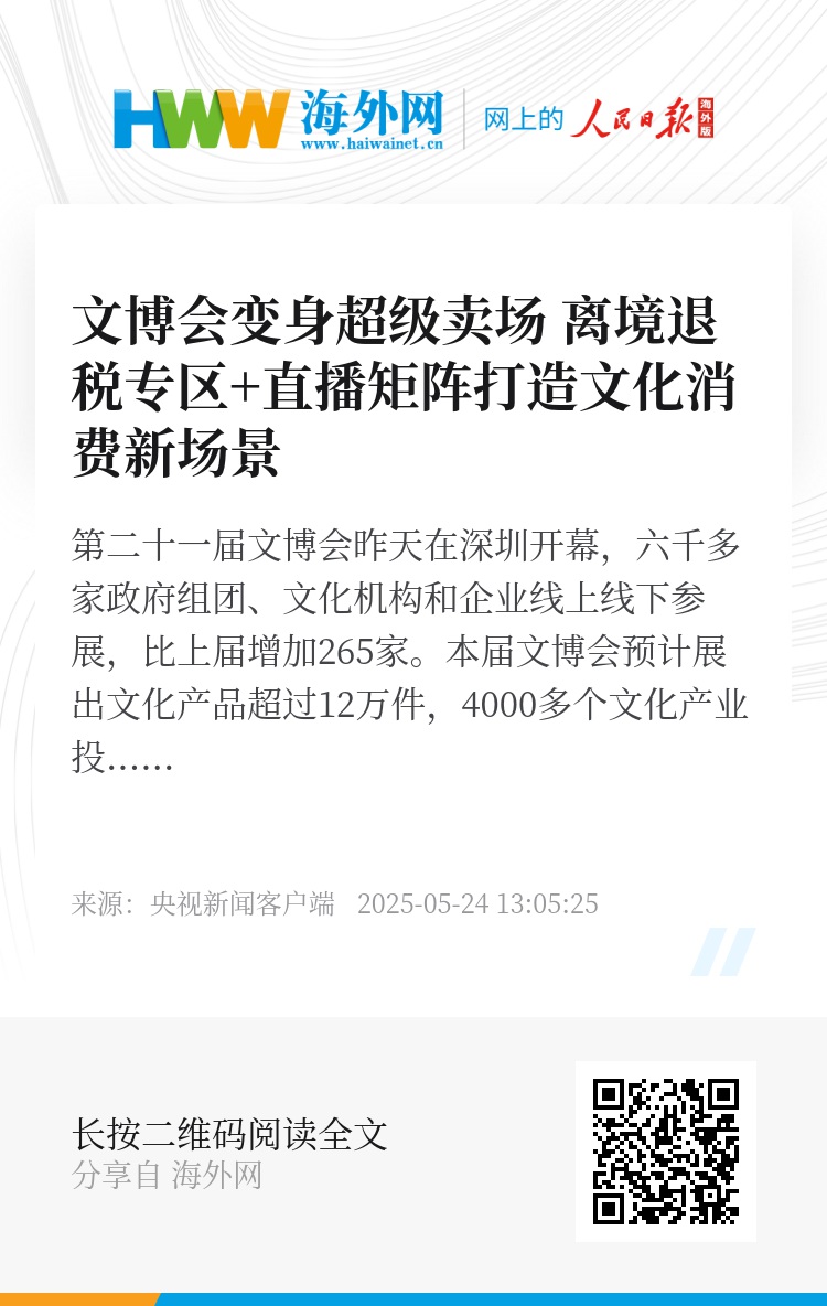 本届文博会推出22项促交易措施,在文博会现场首次设立的“离境退税专区”,开幕首日就有境外消费者体验到文博会上的“即买即退”。