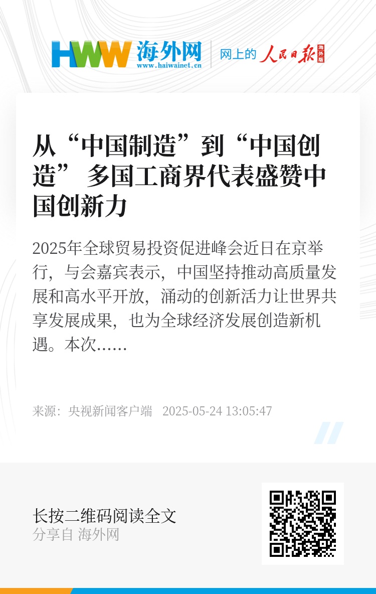 本次全球贸易投资促进峰会有来自48个国家和地区的工商界代表出席,他们最看重的正是中国强劲的创新活力。