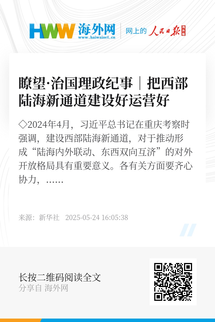 ◇重庆出台一系列政策举措,牵头创新高水平共建机制激发合作潜能,发挥枢纽作用带动内陆腹地提高开放能级,强化陆海联动主动融入和服务国家战略大局,全力以赴把西部陆海新通道建设好、运营好。