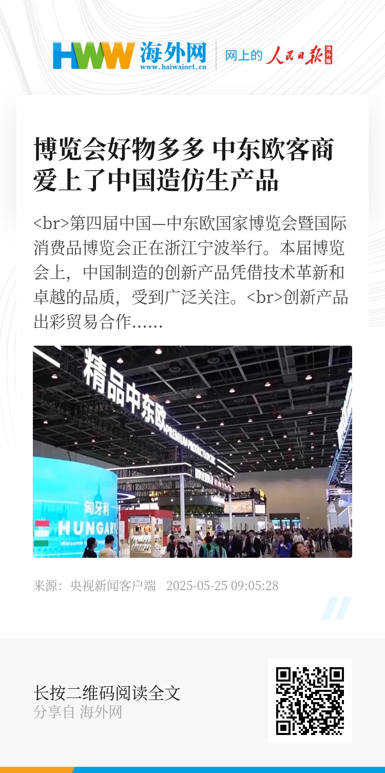 第四届中国—中东欧国家博览会暨国际消费品博览会正在浙江宁波举行。本届博览会上,中国制造的创新产品凭借技术革新和卓越的品质,受到广泛关注。