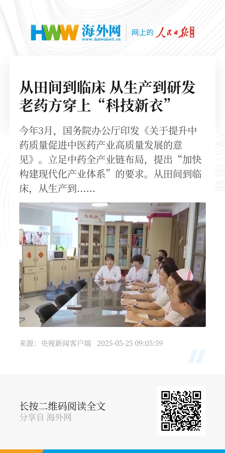 这套创新模式让老药方穿上“科技新衣”,目前该平台已覆盖内、外、妇、儿等常见病领域,通过科学验证的优质中药,正通过这条“快速通道”惠及更多人群。国家药监局数据显示,2024年度受理中药临床试验申请共100件,新药申请40件,全年共批准12个中药新药上市。