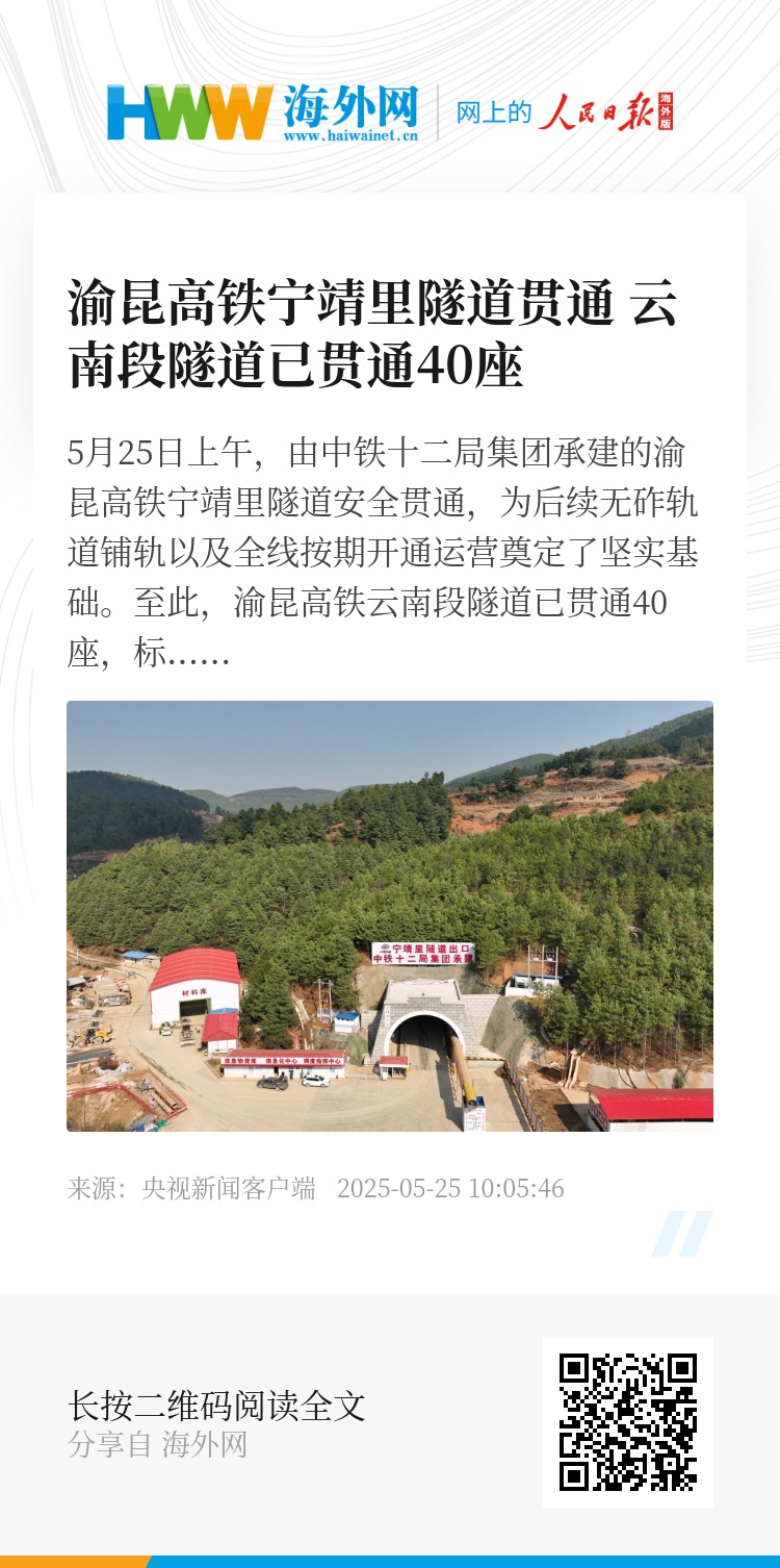 5月25日上午,由中铁十二局集团承建的渝昆高铁宁靖里隧道安全贯通,为后续无砟轨道铺轨以及全线按期开通运营奠定了坚实基础。至此,渝昆高铁云南段隧道已贯通40座,标志着渝昆高铁建设又迈出了关键一步。