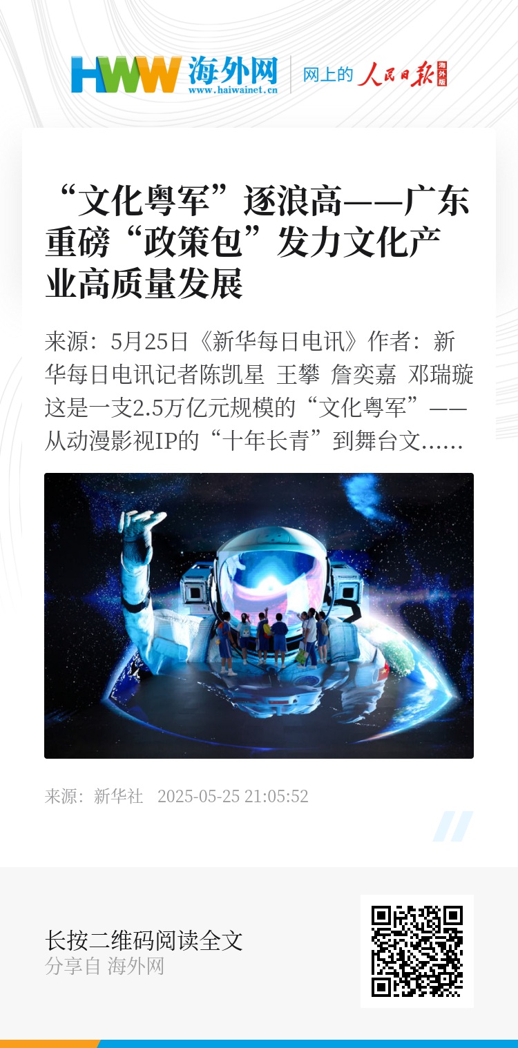 以优质文化产品及服务为基点,以新市场为锚点,广东文化产业既在南粤大地这片热土上扎得更牢、耕得更深,也正在全球市场绘就新的样本、新的坐标。
