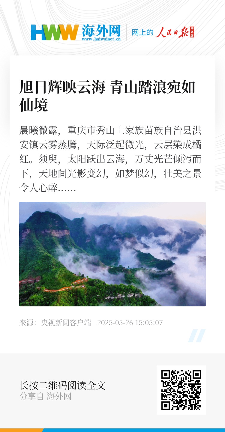 晨曦微露,重庆市秀山土家族苗族自治县洪安镇云雾蒸腾,天际泛起微光,云层染成橘红。须臾,太阳跃出云海,万丈光芒倾泻而下,天地间光影变幻,如梦似幻,壮美之景令人心醉神迷。(总台记者 夏斯伟 谭浪)