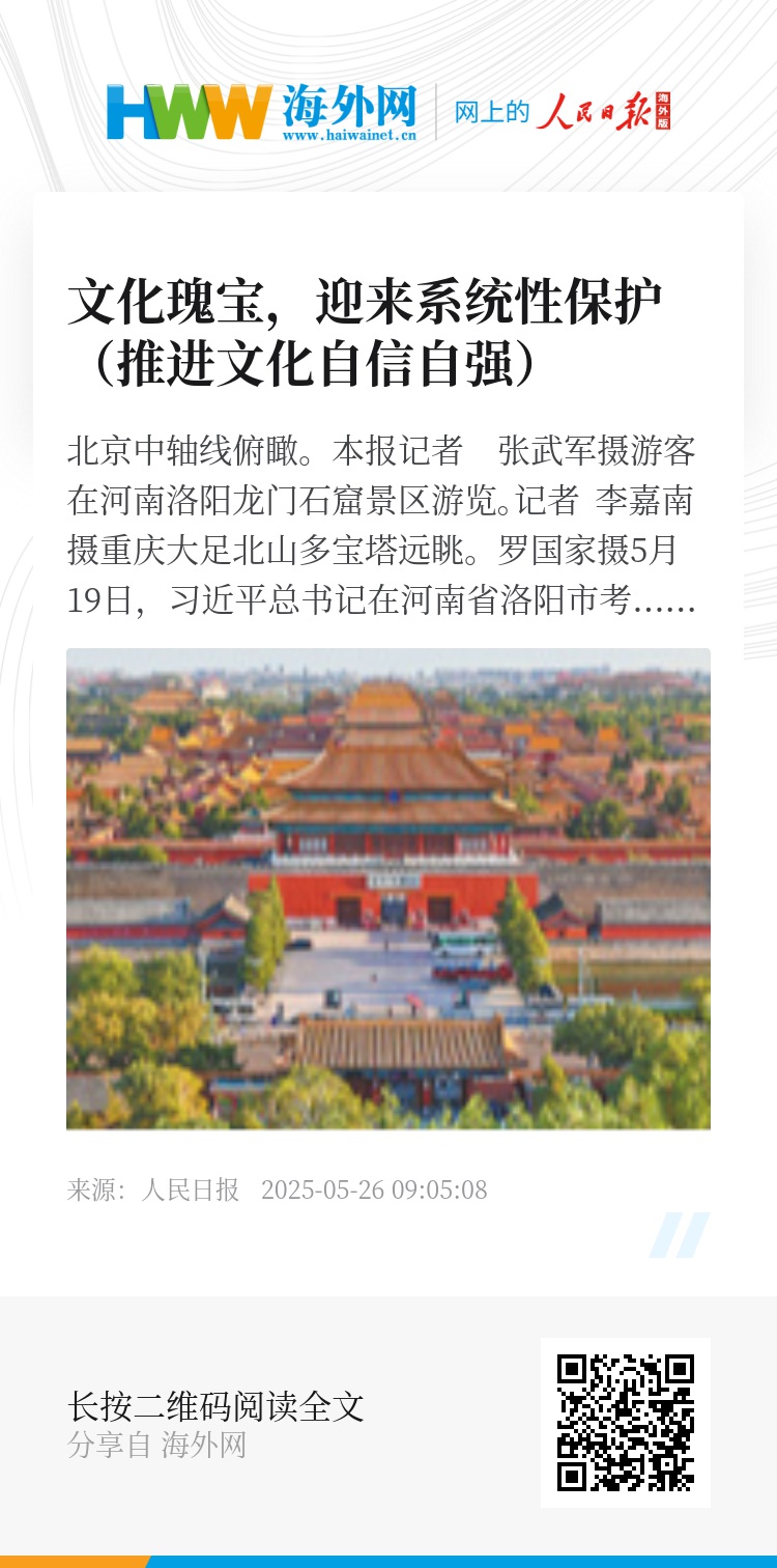 5月19日,习近平总书记在河南省洛阳市考察龙门石窟时强调,“要把这些中华文化瑰宝保护好、传承好、传播好”。4月16日出版的第8期《求是》杂志发表习近平总书记的重要文章《加快建设文化强国》,文章强调“秉持敬畏历史、热爱文化之心,坚持保护第一、合理利用和最小干预原则,推动文化遗产系统性保护和统一监管”。