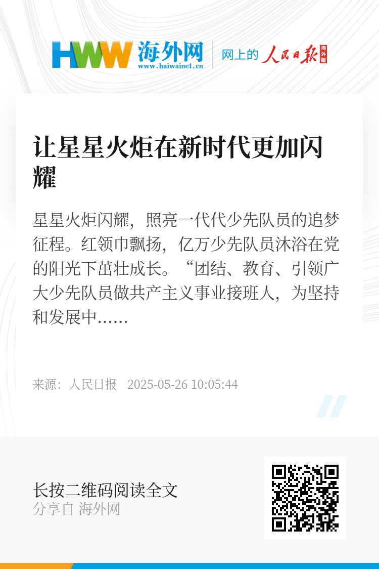 星星火炬闪耀,照亮一代代少先队员的追梦征程。