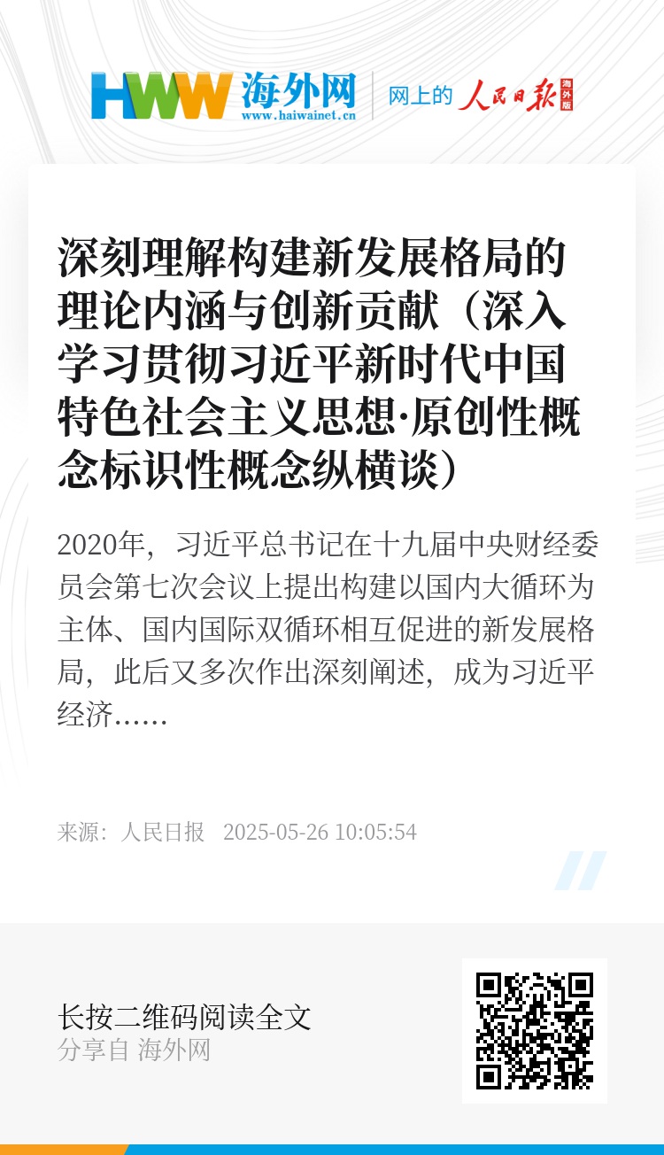 2020年,习近平总书记在十九届中央财经委员会第七次会议上提出构建以国内大循环为主体、国内国际双循环相互促进的新发展格局,此后又多次作出深刻阐述,成为习近平经济思想的重要内容,为夯实我国经济发展的根基、增强发展的安全性稳定性提供了根本遵循。今年4月30日,习近平总书记主持召开部分省区市“十五五”时期经济社会发展座谈会时强调:“要坚定不移办好自己的事,坚定不移扩大高水平对外开放,多措并举稳就业、稳企业、稳市场、稳预期,有效稳住经济基本盘,加快构建新发展格局,全面推动高质量发展。”这为我们科学谋划好“十五五”时期经济社会发展提供了科学指引。